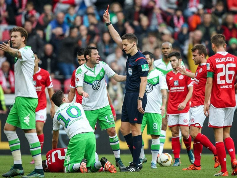 Διαβολοβδομάδα για την Βόλφσμπουργκ, η οποία μετά από την ήττα στην Ολλανδία με 2-0 από την Αϊντχόφεν, υποτάχθηκε με το ίδιο σκορ κόντρα στη Μάιντς, με συνέπεια να διακοπεί η ανοδική πορεία που την είχε φέρει στην 3η θέση του βαθμολογικού πίνακα. Τα πάντα οφείλονται σε μία απερισκεψία του Γιούλιαν Ντράξλερ στο 14′, ο οποίος σε μία διεκδίκηση της μπάλας σήκωσε πολύ ψηλά το πόδι και ο διαιτητής τιμώρησε την κίνηση… κουνγκ φου με κόκκινη κάρτα.