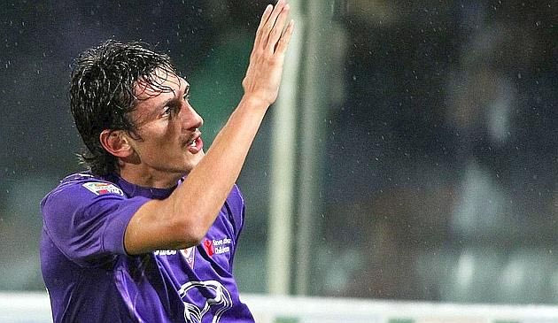 Fiorentina's Stefan Savic celebrates after scoring during a Serie A soccer match between Sampdoria and Fiorentina, at the Artemio Franchi stadium in Florence, Italy, Sunday, Dec. 2, 2012. (AP Photo/Fabrizio Giovannozzi) AP