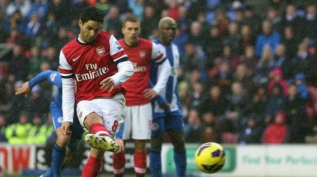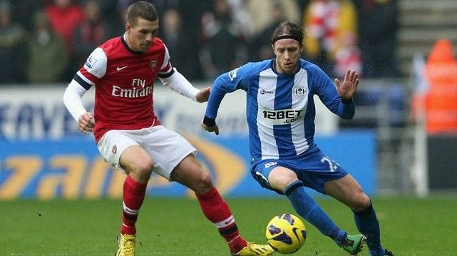 Η Άρσεναλ έφυγε με την αγχωτική νίκη 1-0 από την έδρα της Γουίγκαν και με το σερί 3 νικών στην Premier League, πέρασε στην 3η θέση του πίνακα της βαθμολογίας. Η ομάδα του Αρσέν Βενγκέρ δεν έθελξε με την παρουσία της απέναντι σε μία ομάδα μαχητική, καλά στημένη, αλλά αναποτελεσματική, από τη στιγμή που ο Αρούνα Κονέ έχει σιγήσει τη φετινή σεζόν. Μετά από ένα 1ο ημίχρονο με ευκαιρίες εκατέρωθεν, οι “κανονιέρηδες” κέρδισαν πέναλτι στο 60ό λεπτό σε ανατροπή του Θίο Γουόλκοτ από τον Ζαν Μποσεζούρ.