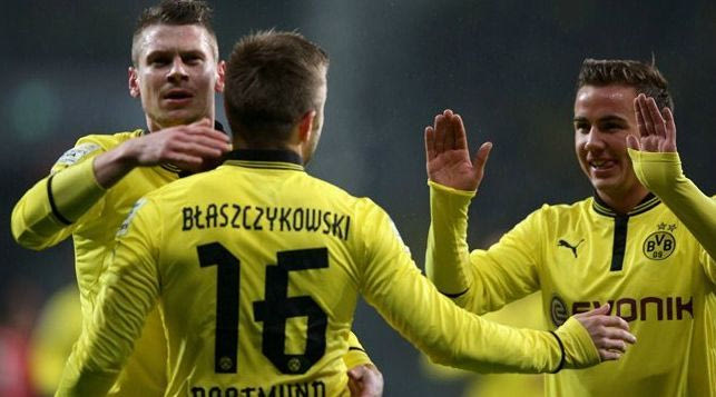 Η πιο φορμαρισμένη ομάδα στη Γερμανία συνέχισε τον καταιγιστικό ρυθμό που έχει θεσπίσει μέσα στο 2013 και μέσα στο 1ο δεκάλεπτο του αγώνα είχε προηγηθεί με 2 γκολ. Ο Μάρκο Ρόις, με ένα τυπικό, όσο και καταπληκτικό γκολ γρήγορης αντεπίθεσης των Βεστφαλών, άνοιξε το σκορ στο 3′ και στο 9′ ο Γιάκουμπ Μπλαστσικόβσκι εκτέλεσε εύστοχα το πέναλτι που κέρδισε ο ίδιος (με τον διαιτητή να χαρίζει την αποβολή του τερματοφύλακα, Μπερντ Λένο).