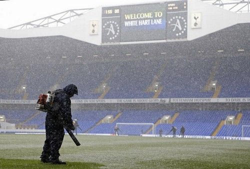 # Υπάλληλοι του “Γουάιτ Χαρτ Λέιν” ξεπαγώνουν τον αγωνιστικό χώρο, προκειμένου να διεξαχθεί η αναμέτρηση της Τότεναμ με τη Μάντσεστερ Γιουνάιτεντ.