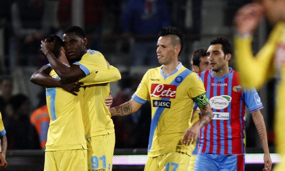 Ένα ημίχρονο ήταν αρκετό για τη Νάπολι, η οποία επικράτησε 4-2 επί της ουραγού Κατάνια στη Σικελία και αύξησε τη διαφορά της από την 4η θέση, μετά από τις ήττες των Φιορεντίνα και Πάρμα. Τρεις μεταγραφές του καλοκαιριού, αναπληρωματικοί στα τελευταία παιχνίδια, αλλά βασικοί στο “Μασιμίνο”, νίκησαν 4 φορές τον Μαριάνο Αντούχαρ και “κλείδωσαν” τη νίκη.