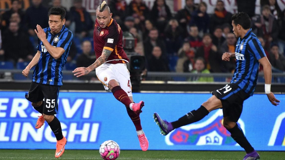 Ένα γκολ του Ρατζά Ναϊνγκολάν στα τελευταία λεπτά απέτρεψε την εντός έδρας ήττα της Ρόμα από την Ίντερ και διατήρησε αναλλοίωτη την απόσταση των δύο ομάδων στη μάχη για τις θέσεις του Champions League. Το τελικό 1-1 βρήκε και τις δύο ομάδες με ένα… παράπονο, αφού οι “νερατζούρι” είχαν τη νίκη στα χέρια τους μέχρι το 84ο λεπτό, ενώ οι “τζιαλορόσι” διαμαρτύρονται δικαίως για ένα πέναλτι στο 2ο ημίχρονο. Ο αγώνας είχε μεγάλη ένταση, αρκετά δυνατά μαρκαρίσματα και γρήγορο ρυθμό, ωστόσο στο 1ο μέρος ελάχιστες πολύ καλές στιγμές, με εξαίρεση μία ευκαιρία του Στεφάν ελ Σαραουί από κοντά που έσωσε ο Σαμίρ Χαντάνοβιτς.