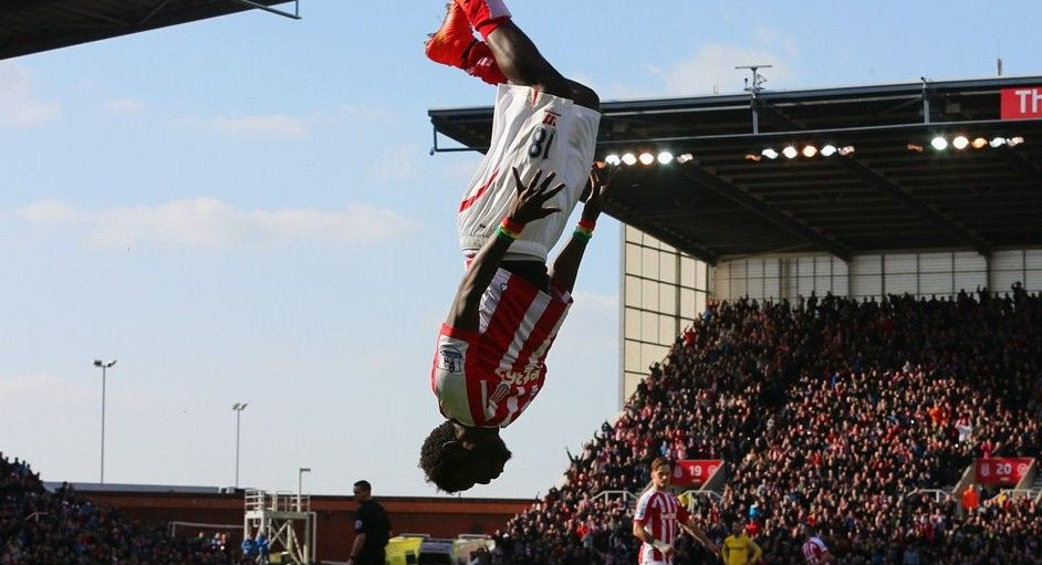 # Ο Μαμέ Μπιράμ Ντιουφ… πετάει κατά τους πανηγυρισμούς του τέρματος που σημείωσε στο Στόουκ – Κρίσταλ Πάλας.