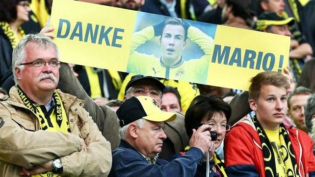# Δεν υπάρχει μόνο το κάψιμο της φανέλας του και οι αποδοκιμασίες. Υπάρχει και αυτή η αντίδραση των φιλάθλων προς το πρόσωπο του Μάριο Γκέτσε, ο οποίος το καλοκαίρι θα μεταγραφεί στην Μπάγερν Μονάχου. “Ευχαριστώ, Μάριο”.