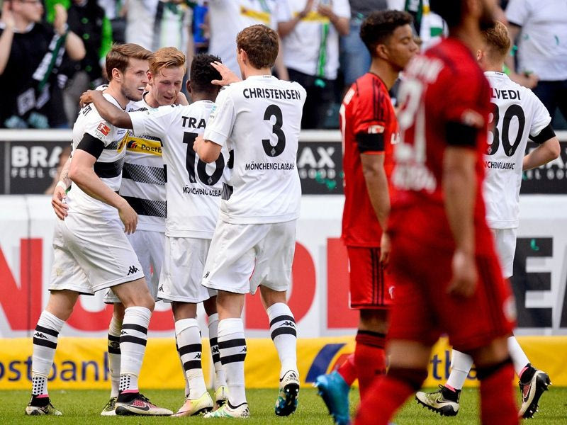 Στο 1ο γύρο ηττήθηκε 5-0, με τον Χαβιέρ Ερνάντες να σημειώνει χατ τρικ σε 13 λεπτά. Πριν από την περσινή σεζόν, μετρούσε 22 παιχνίδια χωρίς νίκη στην έδρα της. Όμως τώρα, η Γκλάντμπαχ έπρεπε να πάρει αυτόν τον αγώνα και δικαίωσε τις προσδοκίες. Απέναντι σε μία αδιάφορη Λεβερκούζεν, που παρατάχθηκε με τέσσερις παίκτες στον πάγκο (και δίχως τον τραυματία Κυριάκο Παπαδόπουλο) λόγω τροφικής δηλητηρίασης που έπληξε το ρόστερ και με βέβαιη την 3η θέση, νίκησε με 2-1 και έγινε το απόλυτο φαβορί για την 4η θέση που οδηγεί στα πλέι οφ του Champions League.