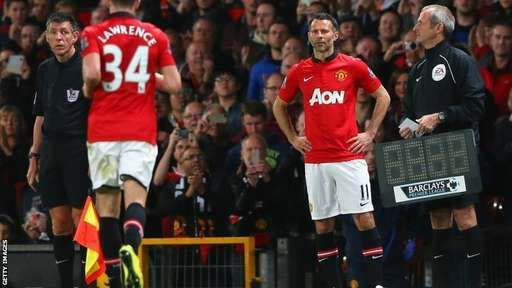 Μία ιστορική στιγμή: Ο Ράιαν Γκιγκς των 963 συμμετοχών αντικαθιστά τον συμπατριώτη του Τομ Λόρενς, ο οποίος γεννήθηκε στις 13 Ιανουαρίου 1994. Τότε ο αειθαλής άσος είχε ήδη ξεπεράσει τις 100 συμμετοχές με τη φανέλα της Γιουνάιτεντ