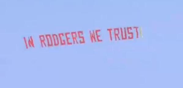 # Πριν από λίγες ημέρες ήταν το πανό για τον Ράφα Μπενίτεθ. Τώρα ήρθε η στήριξη στον Μπρένταν Ρότζερς με τον ίδιο τρόπο, ένα αεροπλάνο με ένα πανό να ανεμίζει στην ουρά του.