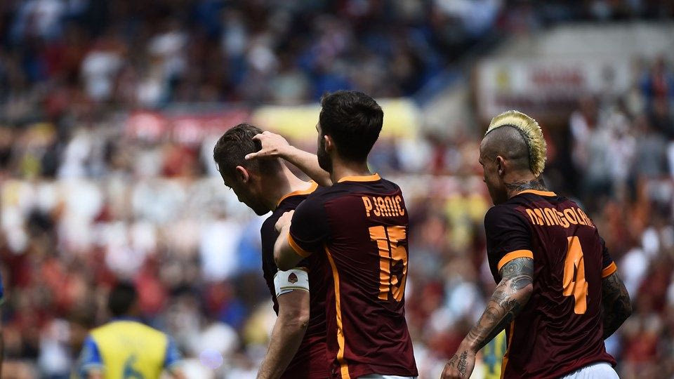 Η Κιέβο δεν μπόρεσε να βρει λύσεις απέναντι στην άμυνα των Ρωμαίων, οι οποίοι είχαν βασικό τον Κώστα Μανωλά και στον πάγκο τον Βασίλη Τοροσίδη. Στο 59ο λεπτό, ο Λουτσιάνο Σπαλέτι έβαλε στον αγώνα τον Φραντσέσκο Τότι και οι 60.000 φίλοι των γηπεδούχων που βρέθηκαν στις κερκίδες (μεταξύ των οποίων και ultras που έσπασαν το μποϊκοτάζ λόγω της κόντρας με την ιδιοκτησία) σηκώθηκαν από τη θέση τους. Ο καπιτάνο έφτασε τις 600 συμμετοχές στη Serie A, όντας πίσω μόνο από τους Χαβιέρ Σανέτι (615) και Πάολο Μαλντίνι (647) και ίσως στο τελευταίο εντός έδρας παιχνίδι του με τον σύλλογο, γιόρτασε με μία ασίστ στον Μίραλεμ Πιάνιτς για το τελικό 3-0.