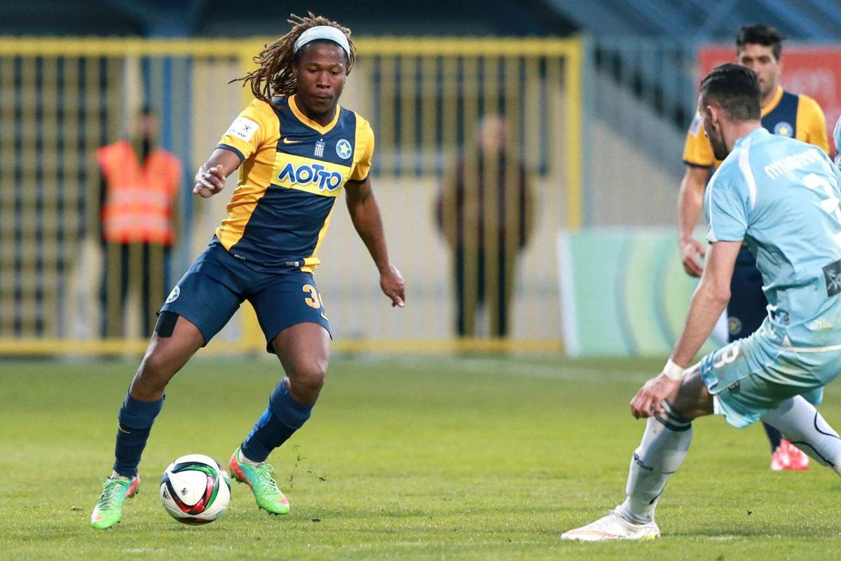 Ο Ζιγκί Μπαντιμπανγκά του Αστέρα σε στιγμιότυπο της αναμέτρησης με τον Εργοτέλη για τη Super League 2014-2015 στο 'Θεόδωρος Κολοκοτρώνης' | Κυριακή 22 Μαρτίου 2015 Eurokinissi Sports