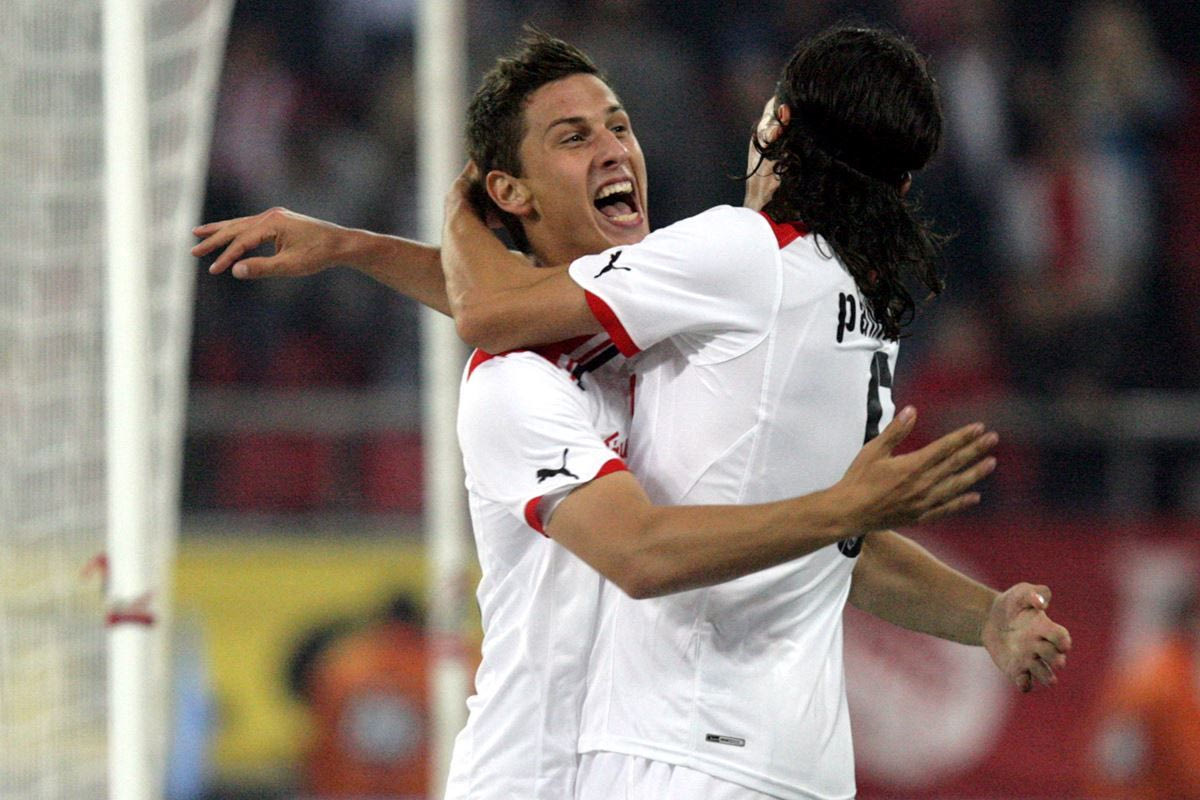 Ο Κρίστιαν Νέμετ του Ολυμπιακού πανηγυρίζει με τον Μάρκο Πάντελιτς γκολ που σημείωσε κόντρα στον Πανιώνιο για τη Super League 2010-2011 στο γήπεδο της Νέας Σμύρνης | Σάββατο 6 Νοεμβρίου 2010 Eurokinissi Sports/Μάρκος Χουζούρης