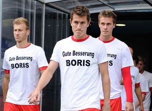 # Πολλά τα πανό και τα μηνύματα στο γήπεδο της Χόφενχαϊμ (φίλαθλοι και παίκτες) για ταχεία ανάρρωση στον Μπόρις Βούκτσεβιτς, ο οποίος περνάει κρίσιμες ώρες στο νοσοκομείο, μετά το τροχαίο ατύχημα που είχε την Παρασκευή (28/09).