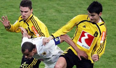 Ο Ντούσαν Μπάγεβιτς προτίμησε και πάλι τον Κέλεμαν κάτω από τα δοκάρια, ενώ το καρέ της άμυνας ήταν αναμενόμενο (Νέτο, Αουρέλιο, Παπαδόπουπουλος, Ρονάλντο). Στο κέντρο οι Γιάχιτς, Νεμπεγλέρας ήταν τα αμυντικά χαφ και οι Σανσόν, Σιστόν στα άκρα. Τις προσπάθειες του μοναδικού προωθημένου, Αμορόζο, υποστήριζε ο Ίβιτς.