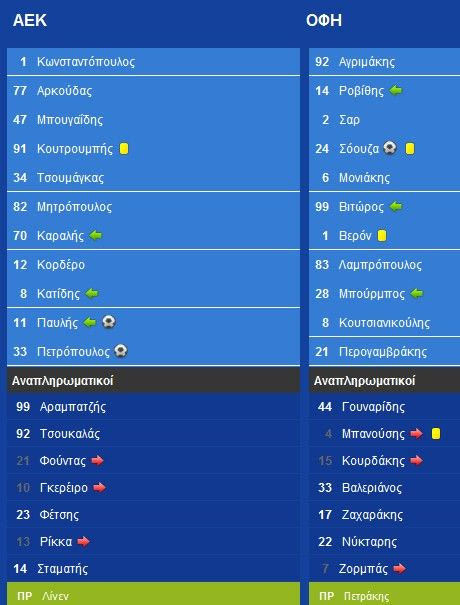 Η ΑΕΚ είχε κίνηση, είχε διάθεση, είχε έναν εξαιρετικό Κορδέρο (θύμισε Σκόκο) είχε και πολλές χαμένες ευκαιρίες, αλλά δεν είχε το γκολ. Ο ΟΦΗ δεν είχε τον τιμωρημένο Παπάζογλου, δεν είχε την κυκλοφορία της μπάλας προηγούμενων αγώνων, είχε όμως την τύχη με το μέρος του. Ετσι, κόντρα στη ροή του ματς, η Ενωση βρέθηκε να χάνει από τους Κρητικούς στην πρώτη του εντός έδρας τελική στο πρώτο ημίχρονο.