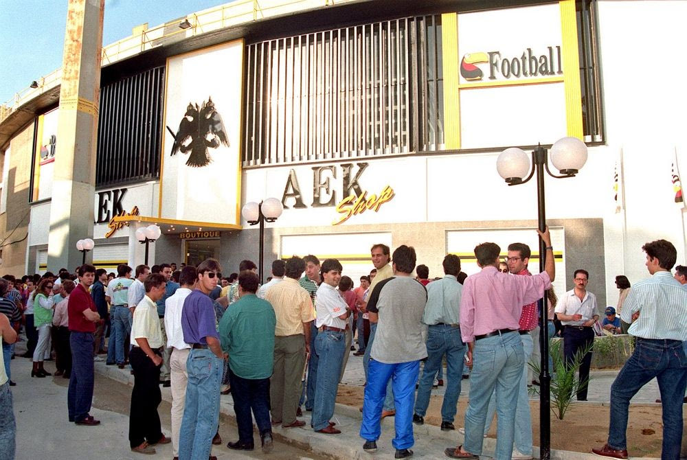 2. Η αύρα της δεκαετίας του ’90. Οι στιγμές ποδοσφαιρικού μεγαλείου που αποτέλεσε σημείο αναφοράς για όλους τους Έλληνες, η χαίτη του Βασίλη Μπορμπόκη, οι τσακωμοί για τις διαφημιστικές πινακίδες του Νικόπουλου, οι αναγγελίες τύπου «εφημερίδα Δικέφαλος» και τα μακρόσυρτα «φόρτσα ΑΕΚ» από τα μεγάφωνα που σκέπαζαν τον ουρανό και χάνονταν στην ατμόσφαιρα μαζί με τα εκατοντάδες… ιπτάμενα αφρολέξ.