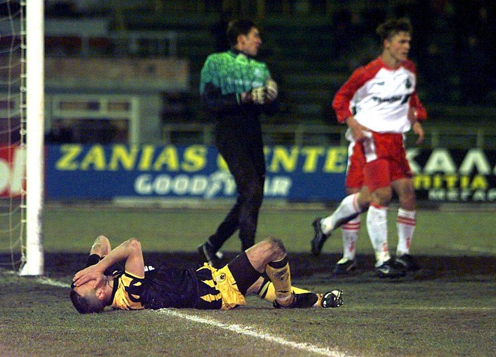 37. Ένα άλμα του Νικολαϊδη στον… Θεό. Όπως αυτό με τη Φερεντσβάρος το καλοκαίρι του 1998, στο τέρμα μπροστά από τη θύρα 21 του «Νίκος Γκούμας».