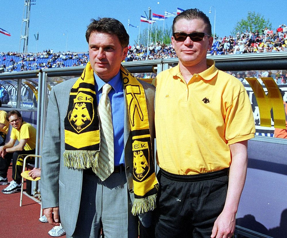 41. Η φωτογραφία του Μπλαχίν με τον Τουμπάκοβιτς τον Απρίλη του 1999 στο Βελιγράδι. Πόσες φορές έχει τύχει ο νυν προπονητής μιας ομάδας, να φωτογραφηθεί με τον… επόμενο, φορώντας -και οι δύο- τα διακριτικά της ίδιας ομάδας; Σπάνια…