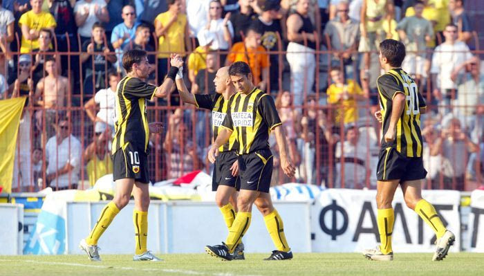 σ.σ. Η ΑΕΚ έπαιζε με παίκτη λιγότερο λόγω της αποβολής του Μιχάλη Κασάπη στο 7ο λεπτό.