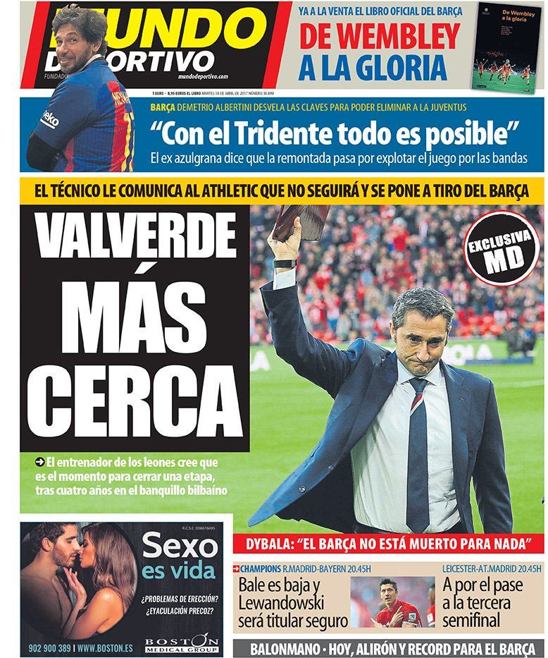 Τέλος εποχής για τον Ερνέστο Βαλβέρδε στην Αθλέτικ Μπιλμπάο και άνοιγμα ενός νέου κύκλου στην Μπαρτσελόνα; Πολύ πιθανό πλέον είναι το συγκεκριμένο σενάριο, με την “Mundo Deportivo” να κυκλοφορεί την Τρίτη (18/4) με πρωτοσέλιδο τον πρώην τεχνικό του Ολυμπιακού και την αποκάλυψη ότι το φινάλε της σεζόν θα τον βρει σίγουρα σε άλλη ομάδα από εκείνη της Χώρας των Βάσκων.