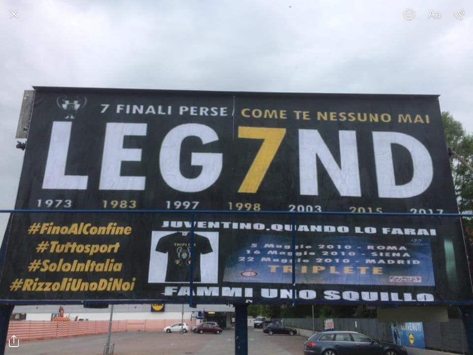 Η λέξη Legend (Θρύλος) έχει γραφεί κατά τέτοιο τρόπο ώστε να παραπέμπει στα αρκετά αρνητικά αποτελέσματά της όταν φτάνει σε τελικό (7 χαμένοι τελικοί – όπως εσύ κανείς, αναφέρεται χαρακτηριστικά) ενώ στο κάτω μέρος της αφίσας γίνεται λόγος στο τρεμπλ που πέτυχε η Ίντερ το 2010 ενώ “υπενθυμίζεται” στους Τορινέζους πως είναι αφεντικά μόνο εντός των συνόρων έχοντας διαιτητικη βοήθεια, όπως εκείνη του Ριτσόλι για παράδειγμα.