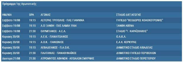 Ορίστηκε το πρόγραμμα της Super League με ακριβείς ώρες και ημερομηνίες. Σέντρα το Σάββατο 19/8 με Ολυμπιακό από τους "Big 4" να κάνει πρεμιέρα.
