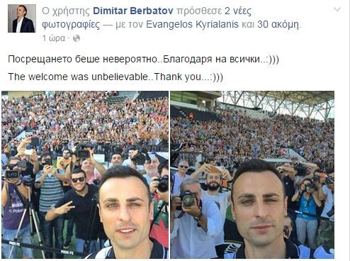 Εδώ και λίγη ώρα στον επίσημο λογαριασμό του Βούλγαρου επιθετικού στο facebook φιλοξενούνται οι φωτογραφίες με φόντο τους οπαδούς του ΠΑΟΚ από την χθεσινή παρουσίαση