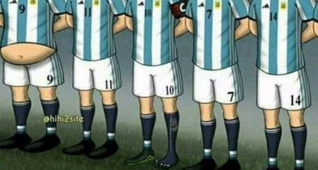 Και αυτό γιατί σε αυτήν βλέπουμε μία σειρά από παίκτες της εθνικής Αργεντινής (δεν φαίνονται τα πρόσωπά τους) όπου το Νο 9 (το νούμερο του Ιγκουαΐν) ξεχωρίζει από όλους τους άλλους αφού η κοιλιά του είναι μεγάλη που βγαίνει έξω από τη φανέλα…