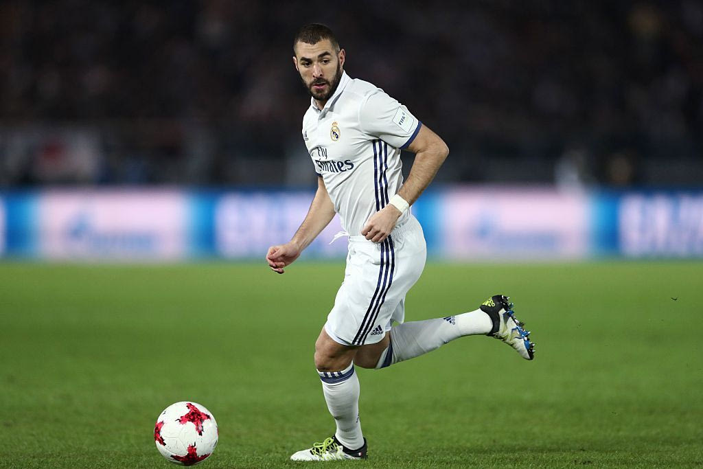 Real Madrid forward Karim Benzema runs for the ball during the Club World Cup football final match between Kashima Antlers of Japan and Real Madrid of Spain at Yokohama International stadium in Yokohama on December 18, 2016. / AFP / Behrouz MEHRI (Photo credit should read BEHROUZ MEHRI/AFP/Getty Images)