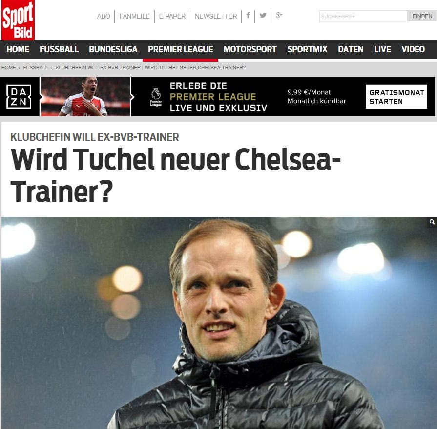 Ο Τούχελ είναι ελεύθερος και έχει την εμπειρία για να καθίσει στον πάγκο της Τσέλσι, ενώ σύμφωνα με το γερμανικό δημοσίευμα είναι θετικός να αναλάβει τα ηνία. Η δεύτερη εναλλακτική σε περίπτωση που στραβώσει το θέμα του Τούχελ, ακούει στο όνομα Λουίς Ενρίκε, με τον πρώην κόουτς της Μπαρτσελόνα να είναι επίσης ελεύθερος.