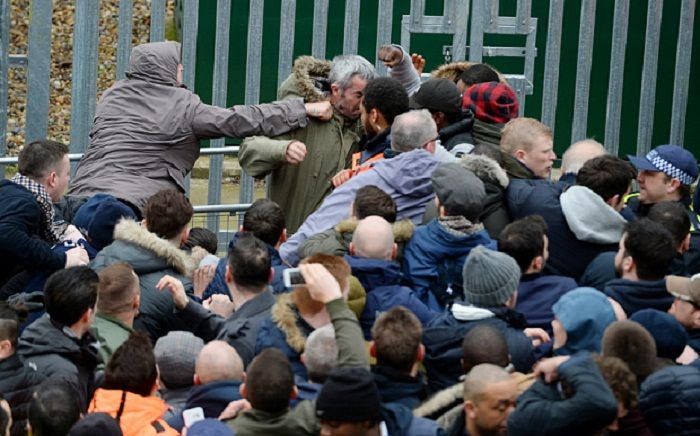 Οπαδοί των δύο ομάδων συγκρούστηκαν σώμα με σώμα έξω από το “Ουάιτ Χαρτ Λέιν” αναγκάζοντας την έφιππη αστυνομία να επέμβει δυναμικά έτσι ώστε να περιορίσει την ένταση.