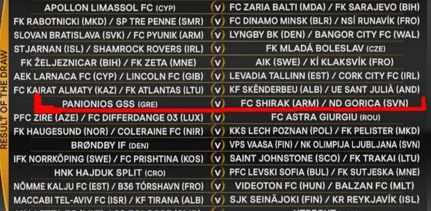 To μεσημέρι της Δευτέρας (19/6) έγινε μάλιστα και η κλήρωση για τον πρώτο και δεύτερο προκριματικό στη δεύτερη τη τάξει ευρωπαϊκή διοργάνωση και από αυτήν προέκυψαν οι υποψήφιοι αντίπαλοι των “κυανέρυθρων” στο δρόμο για τον τρίτο προκριματικό, που θα είναι μία εκ των Σιράκ από την Αρμενία ή Γκόριτσα από την Σλοβενία (θα παιξουν μεταξύ τους).
