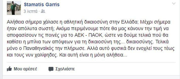 Αιχμηρό ποστάρισμα Γαρρή: “Μόνο ο Παναθηναϊκός την πλήρωσε”