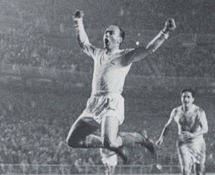 Ο Ντι Στέφανο πανηγυρίζει το δεύτερο γκολ του στον τελικό με την Άιντραχτ