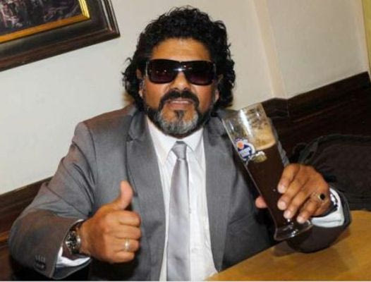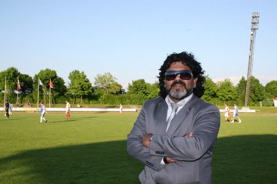 A Maradona look-alike waits for the beginning of the friendly soccer match between Germany and Argentina, Wednesday, Aug. 15, 2012 in Frankfurt, Germany. (AP Photo/Frank Augstein)