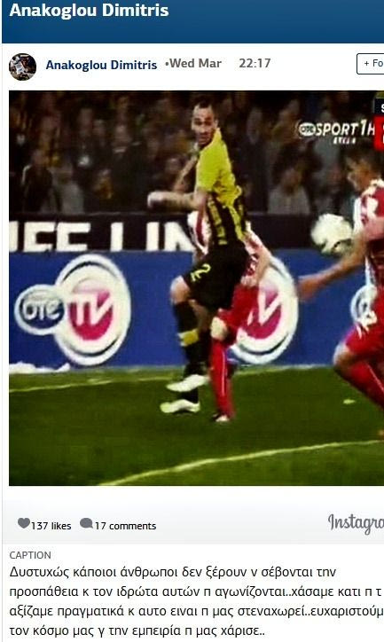 Αιχμές για τη διαιτησία αφήνει ο Δημήτρης Ανάκογλου με ανάρτησή του στο Instagram, τονίζοντας ότι "κάποιοι άνθρωποι δεν σέβονται τον ιδρώτα μας", ενώ το μήνυμά του συνοδεύει μια φωτογραφία με τη φάση του γκολ του Χάρα.