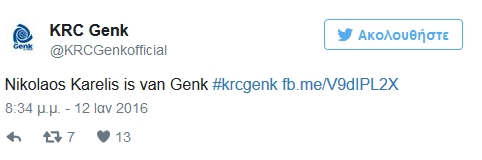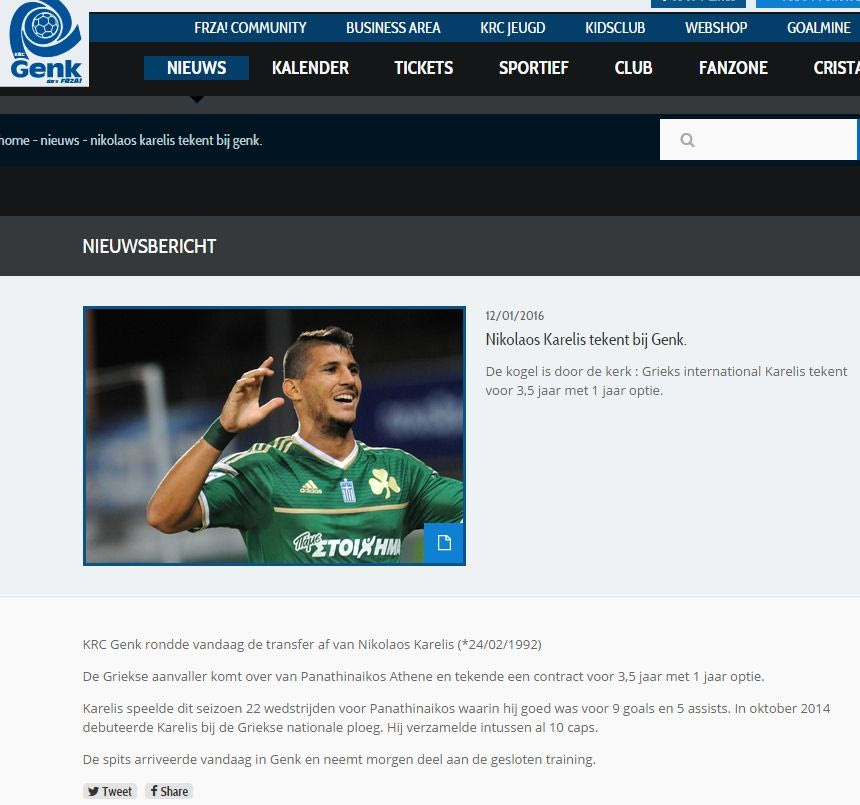 Παίκτης της Γκενκ είναι και επίσημα πλέον ο Νίκος Καρέλης.