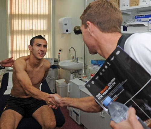 Χειραψία του Οσάμα Ασαϊντί με τον Στίβεν Τζέραρντ την ώρα των ιατρικών εξετάσεων