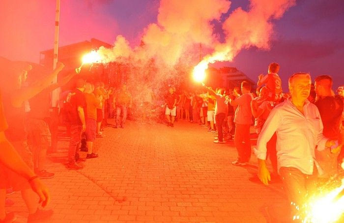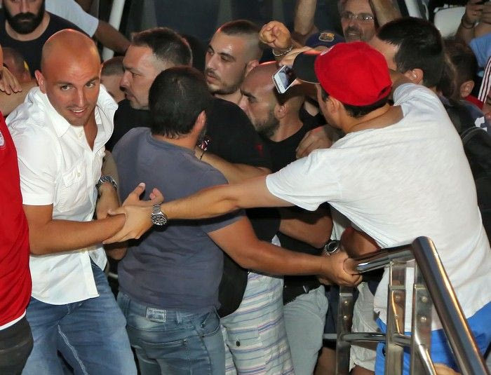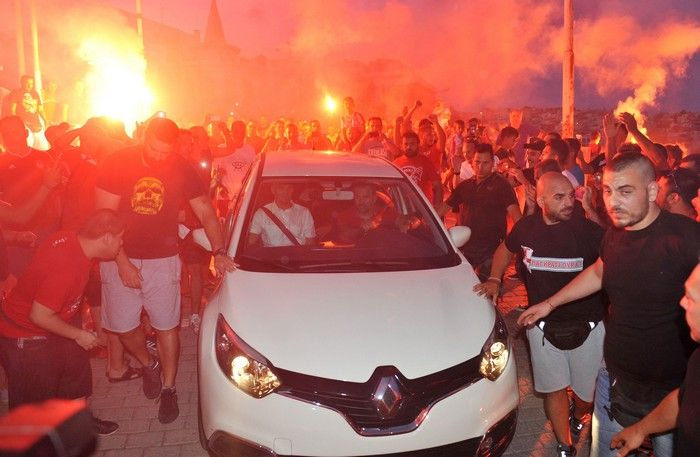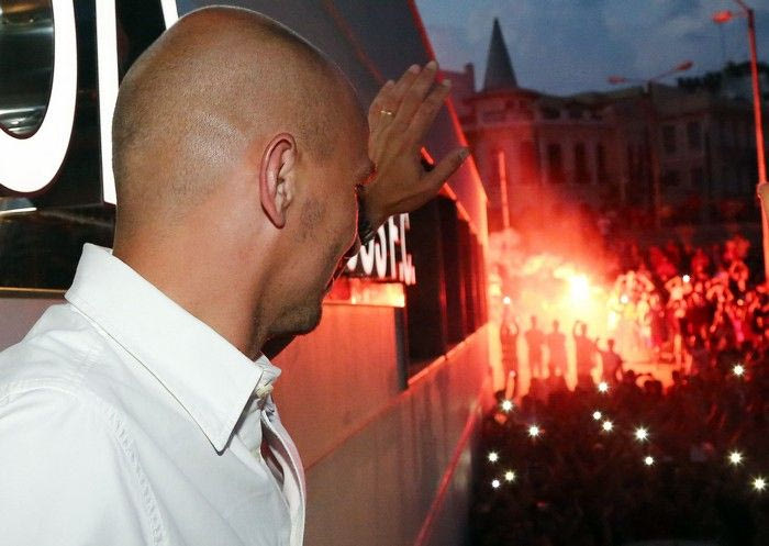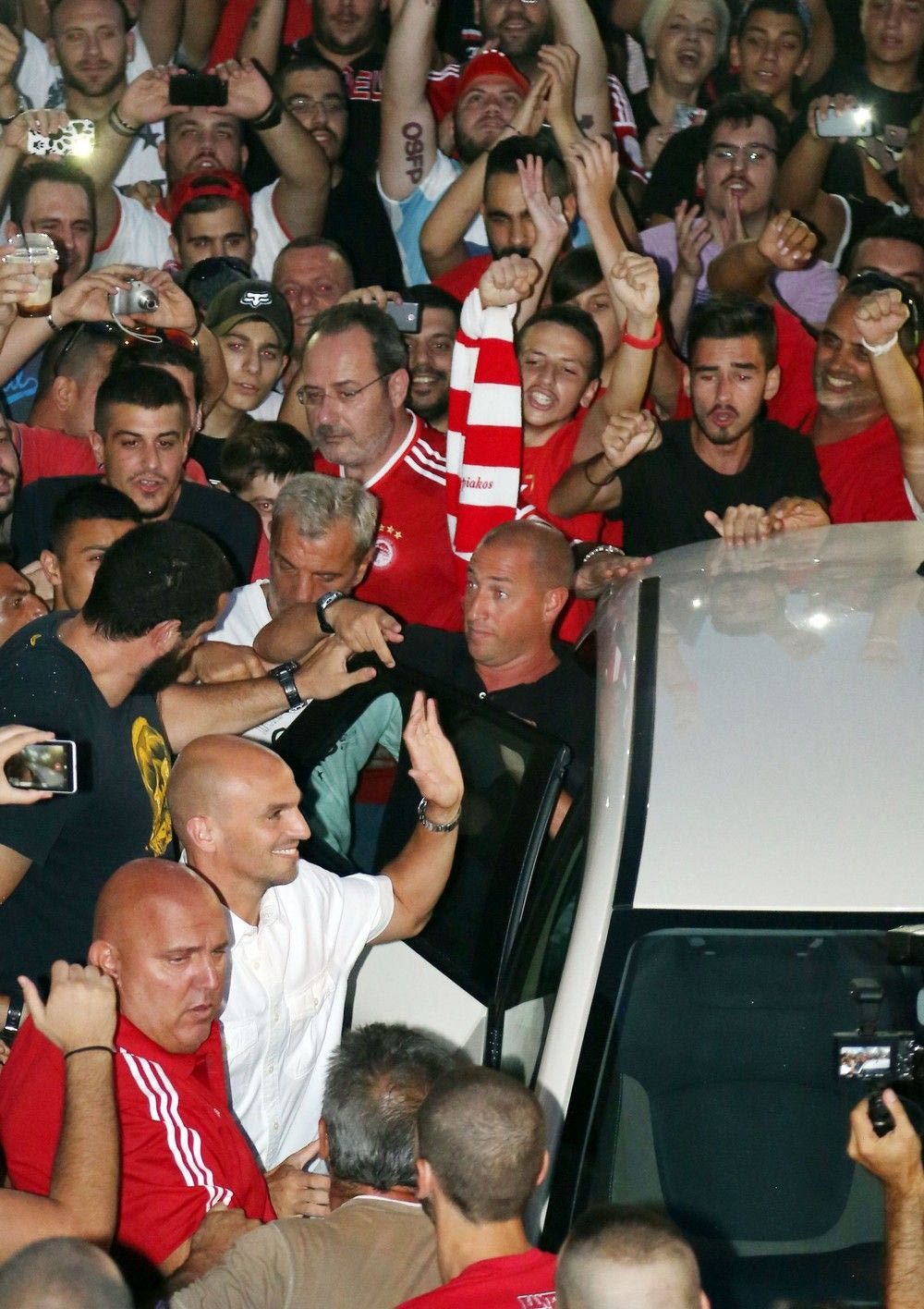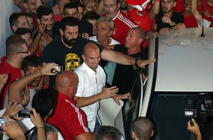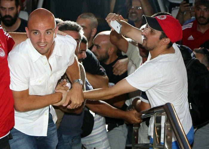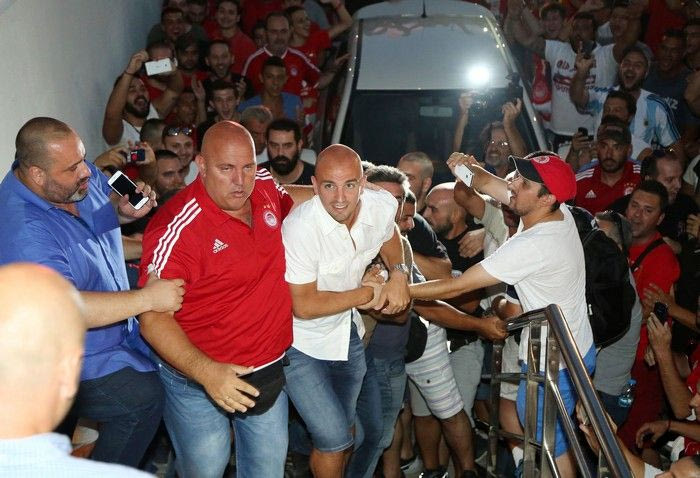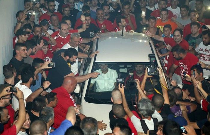 Παρά την αφόρητη ζέστη και την επιπλέον αναμονή λόγω της καθυστέρησης (σ.σ. ο Εστεμπάν Καμπιάσο επρόκειτο να αφιχθεί στις 19:00, αλλά έφτασε λίγο πριν από τις 21:00), οι περίπου 1.500 οπαδοί του Ολυμπιακού τον υποδέχθηκαν με μεγάλη θέρμη, όπως μπορείτε να δείτε σε φωτογραφίες και video.