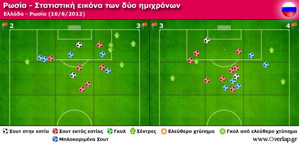 - επιστροφές των πλάγιων επιθετικών για να «ντουμπλάρουν» τους πλάγιους επιθετικούς των Ρώσων ή τις προωθήσεις των πλάγιων μπακ