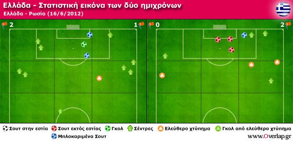 Ο τακτικός… κυνισμός του Φερνάντο Σάντος δικαιώθηκε απέναντι σε μία σαφώς καλύτερη ομάδα από την Ελλάδα. Ο τεχνικός μας κατάλαβε ότι η καλύτερη επίθεση είναι η άμυνα για την ομάδα μας και επέλεξε να επενδύσει στα πλεονεκτήματα του ρόστερ της Ελλάδας παρά να επιχειρήσει τακτικές καινοτομίες. Ο Σάντος α επέτρεψε στην Ρωσία να διατηρήσει την κατοχή της μπάλας (68%), να επιτεθεί στην εστία μας (25 τελικές) και να περιμένει στωικά την «¨χρυσή’ ευκαιρία για γκολ, εμπιστευόμενος τις ανασταλτικές ικανότητες των παικτών μας. Από την άλλη ο Άντβοκατ επέλεξε μία αρκετά συντηρητική τακτική απέναντι σε μία…ακίνδυνη ομάδα θεωρώντας ότι η ατομική ποιότητα των παικτών του και οι αυτοματισμοί θα έφερναν το – ικανό να δώσει την πρόκριση – γκολ. Παρά την πρωτοβουλία των κινήσεων οι Ρώσοι δεν είχαν σαφές επιθετικό πλάνο απέναντι στην ελληνική άμυνα. Το 1-0 δεν ήταν στο μπλοκάκι του Άντβοκατ.