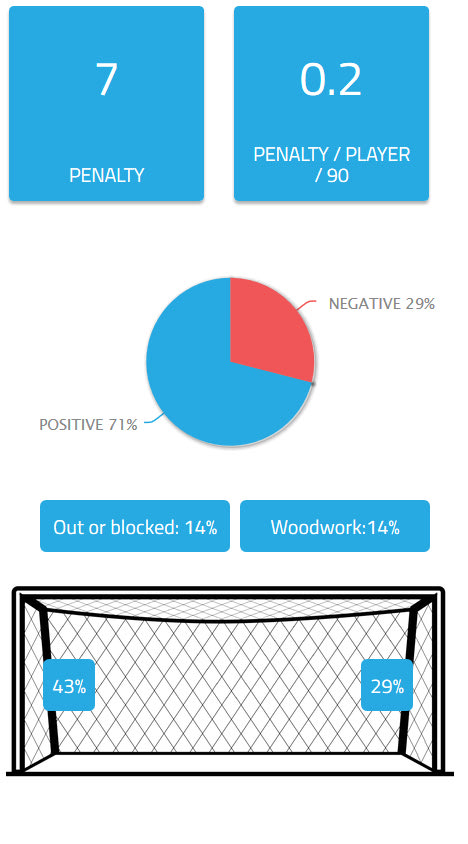 Από τις επτά εκτελέσεις πέναλτι που είχε την σεζόν που πέρασε, σε μια η μπάλα χτύπησε στο δοκάρι και ένα το έστειλε εκτός έστειλε.