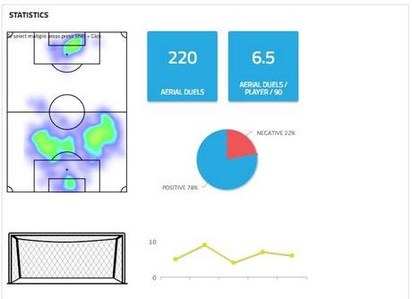 ➔ Οι καταγεγραμμένες εναέριες μονομαχίες στις οποίες ο Σισέ έχει εμπλακεί είναι 220, με το 78% εξ αυτών να είναι κερδισμένες. Αυτές αφορούν -ως επί το πλείστον- γεμίσματα που έχουν γίνει προς το χώρο έξω από την μεγάλη περιοχή της Αζαξιό, εκεί που με βάση το ποσοστό επιτυχίας, ο Σισέ κυριαρχεί.
