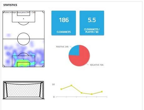 ➔ Στις εκτελέσεις κόρνερ των αντιπάλων έχει 186 απομακρύνσεις, με μέσο όρο 5,5 ανά 90 αγωνιστικά λεπτά, με το 24% εξ αυτών να καταλήγουν σε συμπαίκτη. 1/4 δεν είναι στα τυφλά.