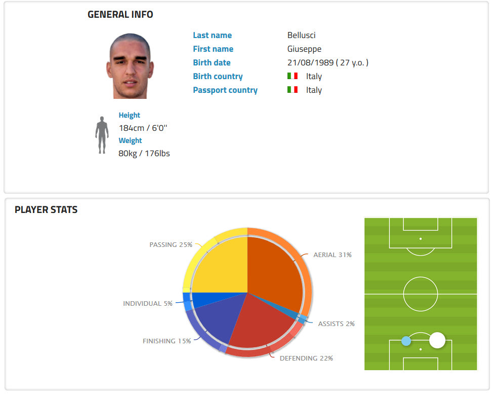 Ο θερμικός χάρτης των συνολικών του προσπαθειών φανερώνει τον “τομέα ευθύνης” του κατά την διάρκεια της περσινής σεζόν, με την φανέλα της Έμπολι, η οποία δεν κατάφερε να αποφύγει τον υποβιβασμό. Ο Μπελούσι ήταν ο αμυντικός που έπιανε… πρώτος δουλειά, όντας κυρίως ανάμεσα στη γραμμή της μεγάλης περιοχής και τη γραμμή του κέντρου, μπροστά από τα όρια της μεγάλης περιοχής. Σε εκείνο το σημείο βρισκόταν για να αξιοποιήσει είτε το ύψος του όταν η μπάλα ήταν στον αέρα, είτε τον σωματότυπό του, όταν ο αντίπαλος είχε τη μπάλα στα πόδια.