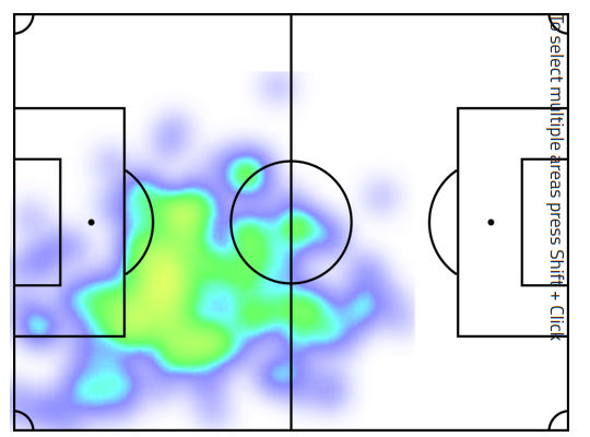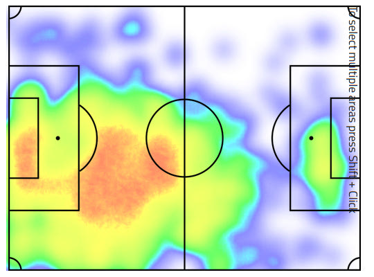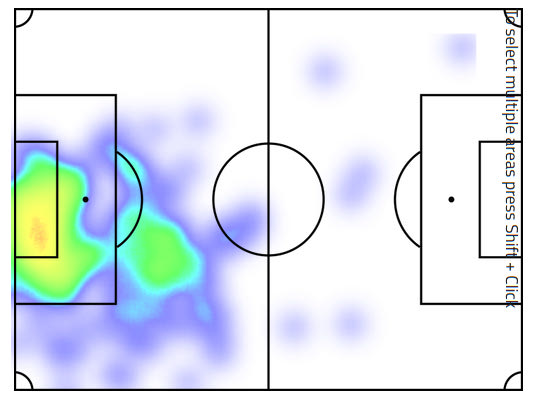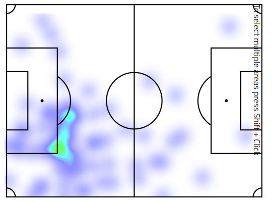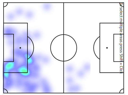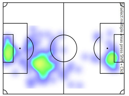 Οι μονομαχίες ένας εναντίον ενός καταγράφονται κυρίως στη δεξιά γωνία της μεγάλης περιοχής (επάνω γράφημα) ενώ οι υπόλοιπες μονομαχίες έχουν δοθεί και εντός μεγάλης περιοχής, στο χώρο που βρίσκεται στα δεξιά της μικρής περιοχής (κάτω γράφημα).