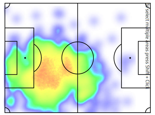 Ο ίδιος χώρος που είναι πιο “ζεστός” από κάθε άλλος στον συνολικό θερμικό χάρτη, είναι “ζεστός” και στις πάσες του Μπελούσι. Δεν είναι ο αμυντικός που θα πάρει τη μπάλα και θα την κουβαλήσει για μέτρα όταν η ομάδα του θα προωθηθεί, καθώς οι πάσες είναι στην πλειοψηφία τους καταγεγραμμένες κάτω από την μεσαία γραμμή και μέχρι το “αμυντικό” μισό του κύκλου. Πέρυσι είχε κατά μέσο όρο 35 πάσες, με ποσοστό στο 92%, καθώς μιλάμε για πάσες είτε στον αμυντικό μέσο είτε στον έτερο κεντρικό αμυντικό, πάσες ως επί το πλείστον “σίγουρες”.
