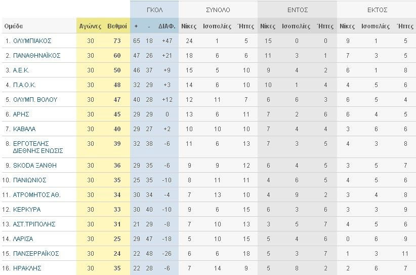 *Η ΠΑΕ “ΗΡΑΚΛΗΣ” καταλαμβάνει την τελευταία θέση της βαθμολογίας, λόγω εφαρμογής σχετικών αποφάσεων των δικαιοδοτικών οργάνων (195/19.5.2011 α’ βάθμια & 133/1.6.2011 β’ βάθμια).