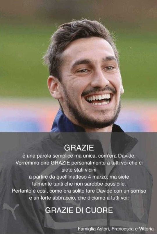 Ο Νταβίντε Αστόρι έφυγε άδοξα και πρόωρα από τη ζωή στις 4 Μαρτίου σε ηλικία μόλις 31 ετών όμως όλοι οι άνθρωποι της Φιορεντίνα εξακολουθούν να τον έχουν μέσα στο μυαλό και στην καρδιά τους και φρόντισαν να το δείξουν για μία ακόμα φορά το απόγευμα της Κυριακής.