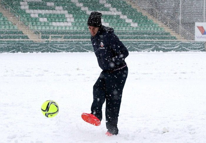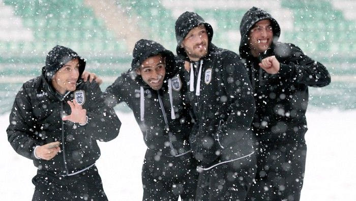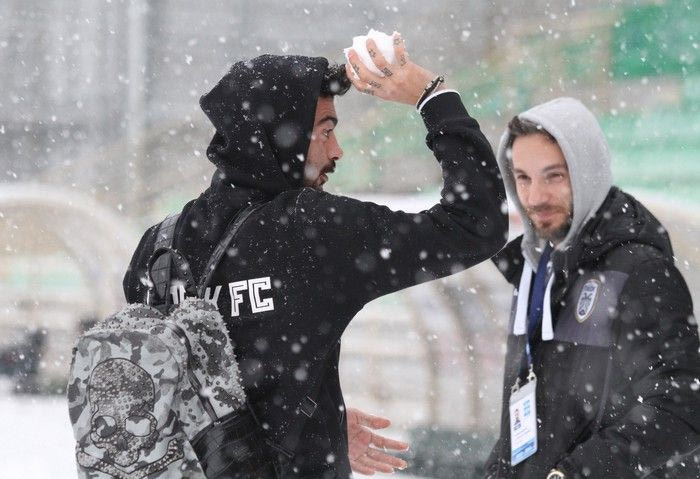 Πριν από την αναβολή οι ποδοσφαιριστές των δύο ομάδων το είχαν ρίξει στο χιονοπόλεμο.
