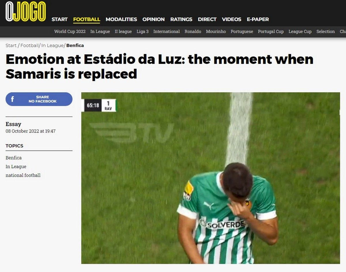 Ο Σάμαρης από την πλευρά του δεν αντέξε από τη συγκίνηση και έκλαψε. Το βίντεο της στιγμής αυτής έχει κάνει το γύρω του διαδικτύου. Εννοείται πως στην Πορτογαλία το θέμα δεν πέρασε έτσι. Τα κορυφαία πορτογαλικά Μέσα έδωσαν μεγάλο χώρο στις συγκλονιστικές στιγμές στο Ντα Λουζ.